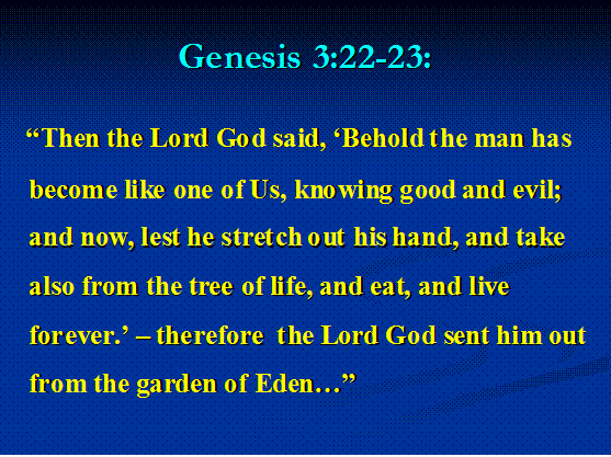 from the tree of life, and eat, and live forever.’ – therefore the Lord God sent him out from the