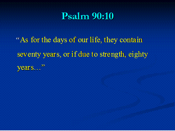 live forever, why these short time spans relative to forever? Of course we can only conjecture here. Perhaps God turned on entropy in man after the