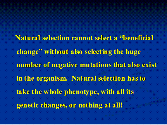 number of negative mutations that also exist in the organism. Natural selection has to take the whole