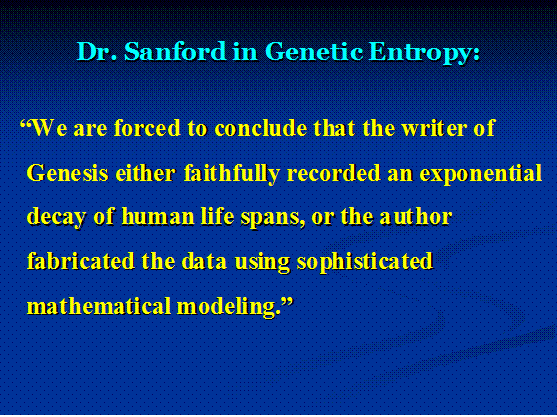 relative to the long ages set for in Genesis 5, Dr. Sanford states in Genetic