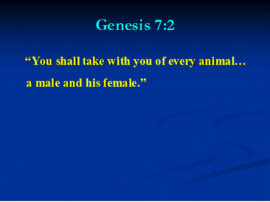 shall take with you of every animal… a male and his female.” As early as the
