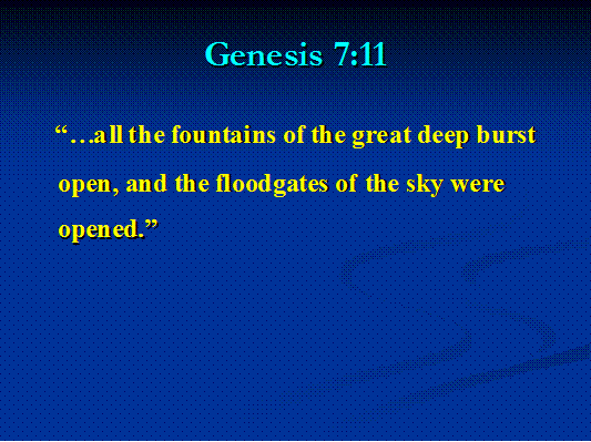 Ken Ham presentation regarding the beginning of the Flood. CLICK HERE TO VIEW FLOOD ANIMATION VIDEO The clock on that video indicated that the
