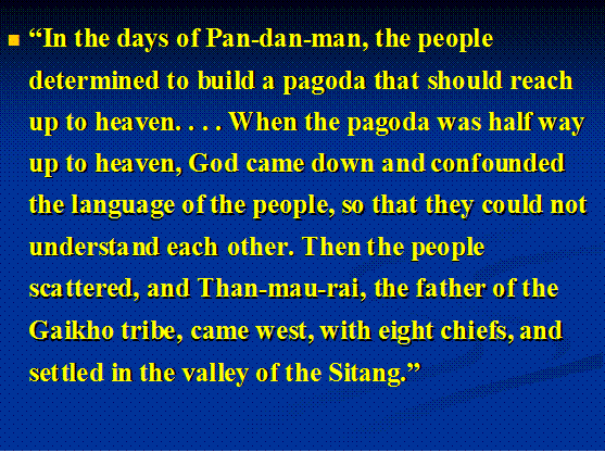 could not understand each other. Then the people scattered, and Than-mau-rai, the father of the Gaikho