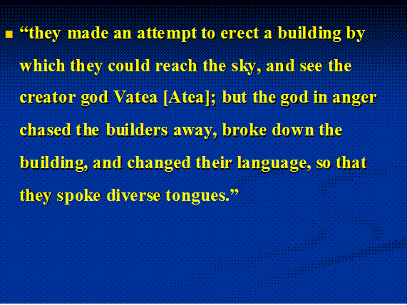 reach the sky, and see the creator god Vatea [Atea]; but the god in anger chased the builders away, broke
